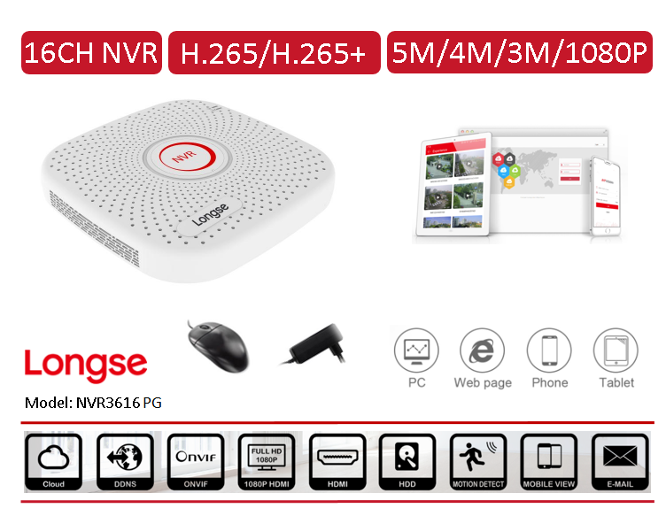 16 kanálový NVR rekordér Longse 3616PG