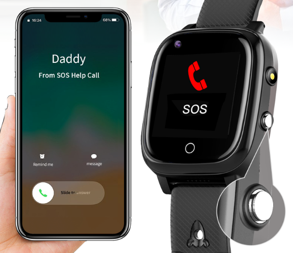 Díky SOS tlačítku, které se nachází na hodinkách, Vám Vaše dítě nebo starý rodič pošle upozornění, pokud se nachází v nebezpečí nebo se necítí dobře. Vy tak dostanete upozornění o stisknutí tlačítka a přesnou polohu dítěte nebo starého rodiče.
