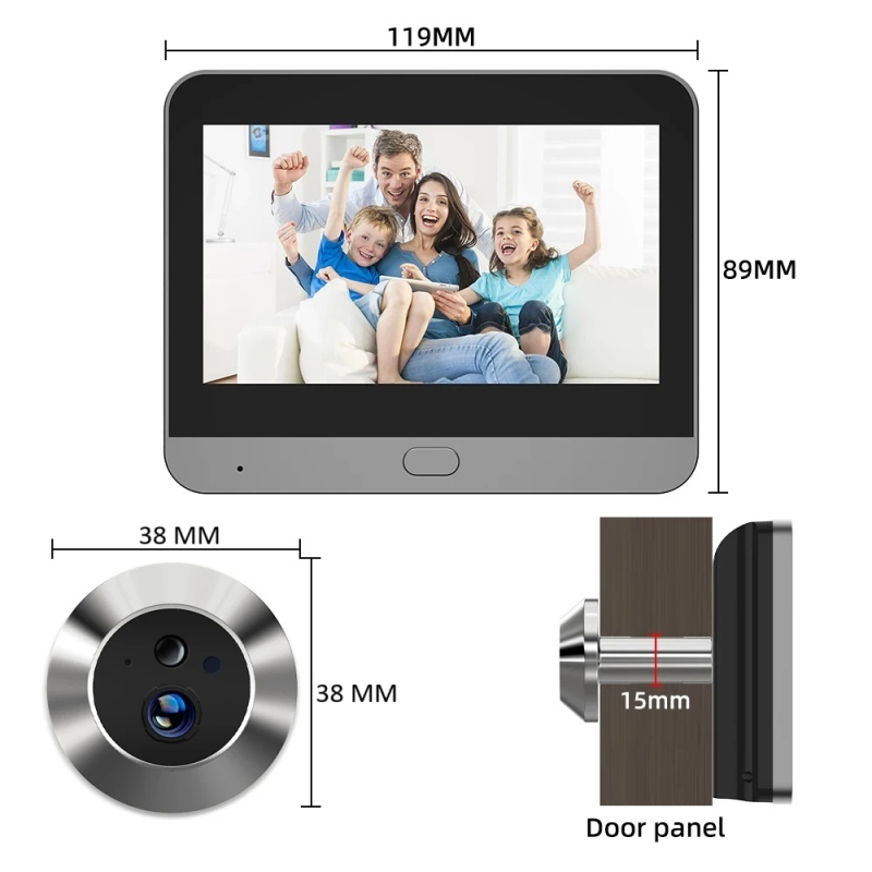 Digitální dveřní kukátko s Wi-Fi kamerou představuje nové standardy v oblasti domácí bezpečnosti. Kombinuje kvalitní HD kameru, široký úhel záběru, inteligentní detekci pohybu, Wi-Fi připojení a propracovaný 4,3" displej pro jednoduché a pohodlné sledování dění před dveřmi. Navenek působí jako klasické kukátko ve dveřích, ve skutečnosti však jde o výkonné bezpečnostní zařízení pro každý typ domácnosti, bytu či kanceláře.