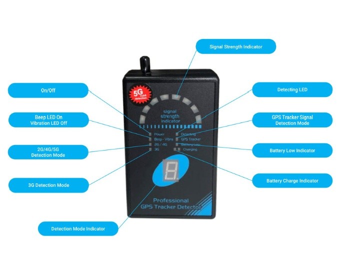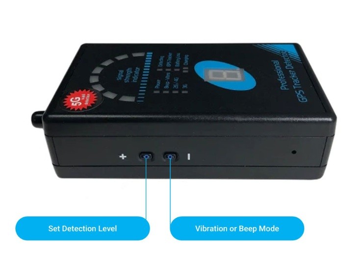 RF detekce (2G/3G/4G/5G, GSM): Detekuje aktivní GPS zařízení vysílající signál prostřednictvím mobilních sítí – včetně nejnovějších modelů. Díky 6 úrovním citlivosti se snadno přizpůsobí každému prostředí.