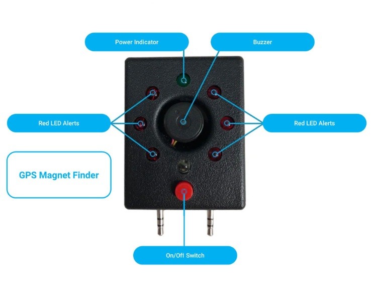 Magnetická detekce: Odhalí pasivní trackery bez signálu připevněné pomocí magnetu – dokonce i když jsou vypnuté. Detekuje i slabá magnetická pole do vzdálenosti 30 cm.