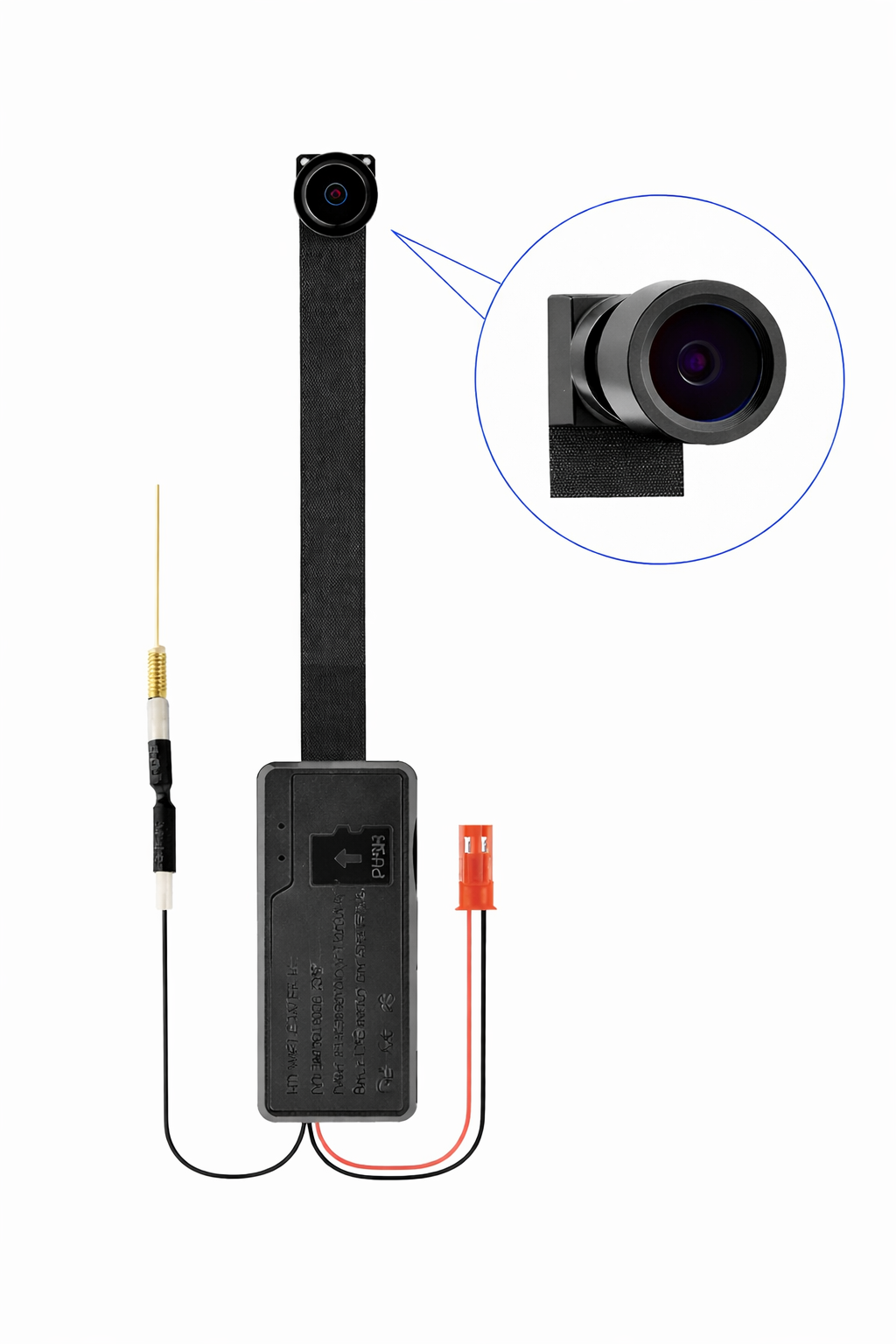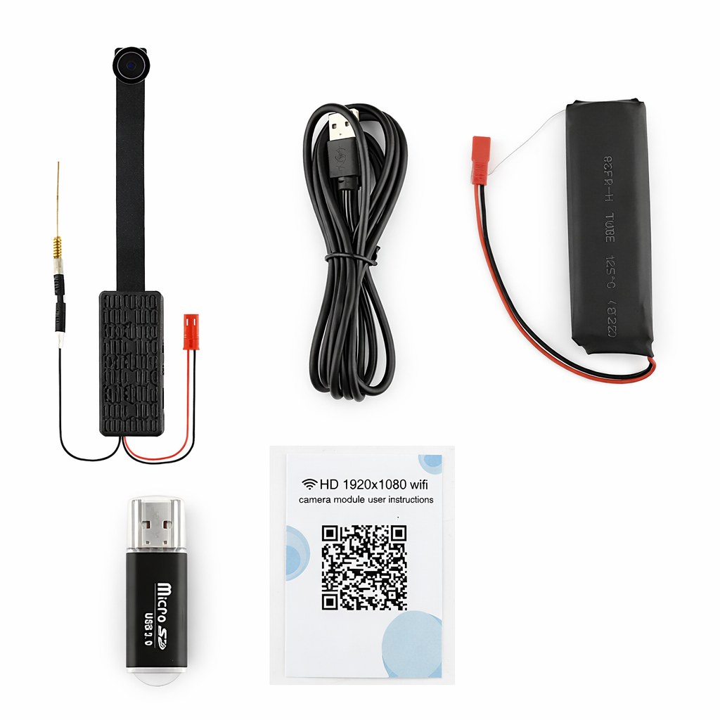 Wi-Fi 1080P Kamerový modul s nejširším až 160 ° úhlem záběru je nejlepším kamerovým modulem z naší nabídky. Mezi jeho funkce patří nahrávání videa, detekce pohybu a fotografování. Kamera je vybavena rozlišením videa 1080P/720P/VGA. Wi-Fi 1080P rozlišení videa poskytuje kvalitní obraz, které lze ukládat na paměťovou kartu o velikosti až 128 GB. Díky silné baterií 2500 mAh dokáže nahrávat 3 hodiny nebo můžete tento modul připojit k Powerbanke. Kamerový modul je vhodný pro zabezpečení kanceláří i bytů. Miniaturní kamerový modul s možností přenosu signálu přes WiFi do mobilního telefonu či tabletu. Díky tomu, že přenos obrazu funguje přímo přes WiFi, tak nepotřebujete žádný speciální přijímač a obraz můžete přijímat přímo na vašem smartphone. K modulu je zdarma dodávána aplikace pro iPhone / Android. Díky miniaturním rozměrům lze tento modul snadno zakamuflovat. Modul je také vhodný pro instalace do nejrůznější elektroniky. Přes Váš Smartphone se můžete připojit na kamerový modul kdekoli na světě. S detekcí pohybu Vám už neujde žádný moment a každý pohyb budete mít zaznamenán. Rozsah dosahu detekce pohybu (6 metrů).