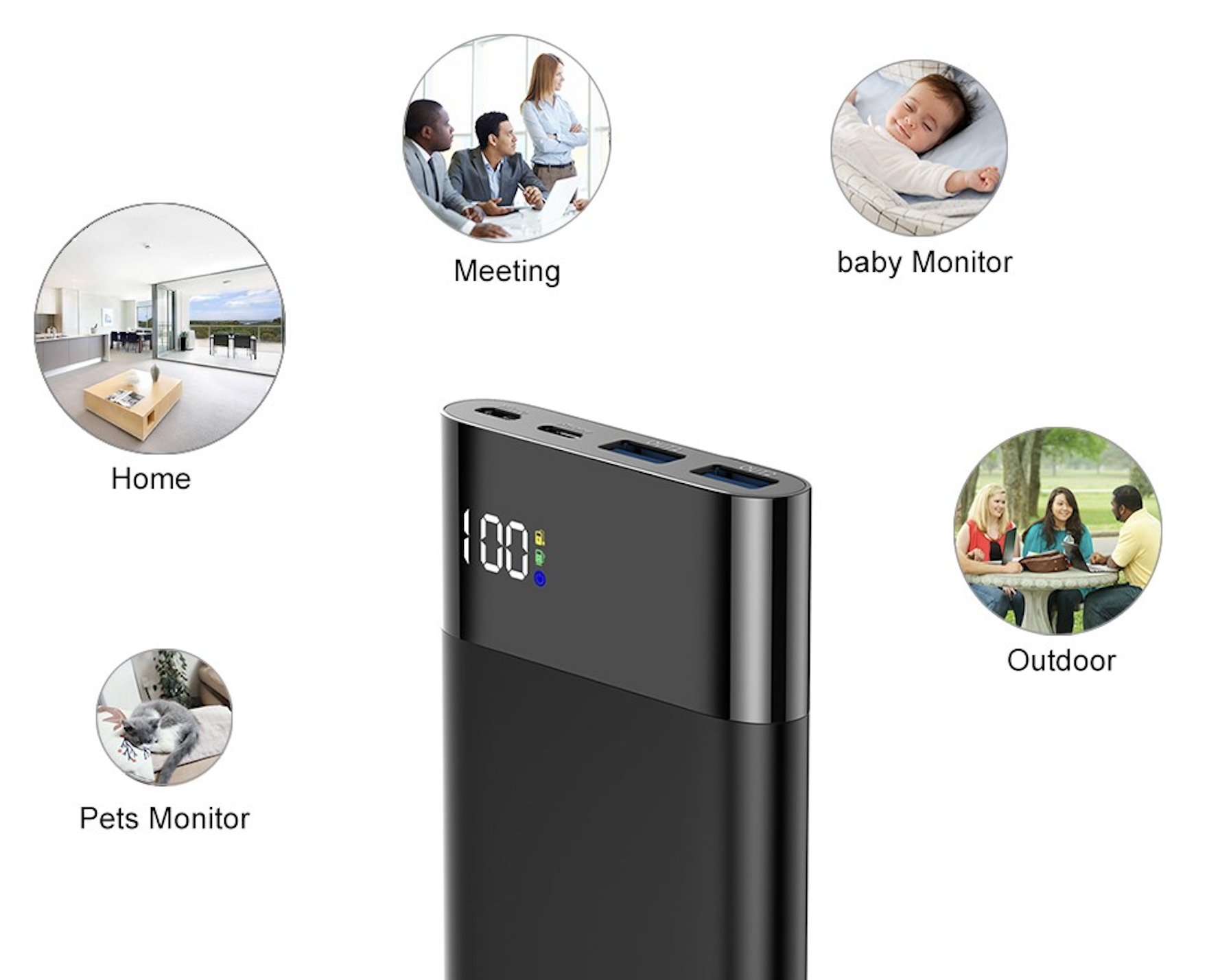 Kamera nabízí Ultra HD 4K video, které zajišťuje ostrý obraz a detailní záběry během dne i při horších světelných podmínkách. Díky dlouhé výdrži baterie dokáže powerbanka hlídat kancelář, sklad nebo byt i několik hodin. Kamera je vybavena funkcí nočního vidění se 2 infračervenými (IR) LED diodami. Zařízení má také inteligentní detekci pohybu, která automaticky spustí nahrávání při zaznamenání pohybu v prostoru. Díky tomu se šetří místo na paměťové kartě a ukládají se pouze důležité momenty.